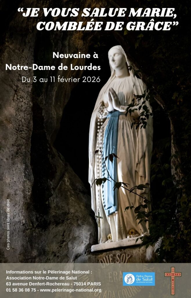 Chaque année, à l’approche de la fête de Notre-Dame de Lourdes, le 11 février, nous vivons une belle tradition : une neuvaine de prière est proposée par l’Association Notre-Dame de Salut, qui accompagne l’organisation du Pèlerinage National de l’Assomption. Depuis des générations, cette neuvaine nous rassemble dans une même communion de prière pour célébrer Notre-Dame de Lourdes.